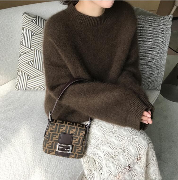 6colors 丸ネック新作秋冬厚手ニットセーター ゆったりニット長袖トップストップスラウンドネックニットカシミヤタッチ トップス ニット