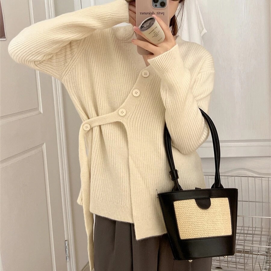秋冬 ニット セーター アンダーウェア ニットカーディガン Vネック デザインドローストリング 気質 レディース トップス 韓国ファッション