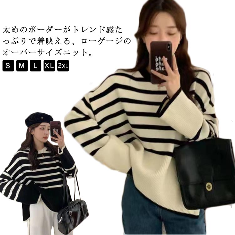 セーター ニット プルオーバー 春 長袖 ボーダー クルーネック 長そで トップス ボーダー レディース ニットウェア ニットプルオーバー チクチクしない オーバーサイズ 大きめ ゆったり 体型カバー