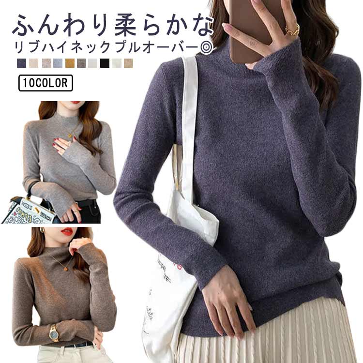 ニット レディース セーター ハイネック 長袖 リブニット きれいめ トップス 洗える ニットアップ tシャツ シンプル 秋冬 ニット