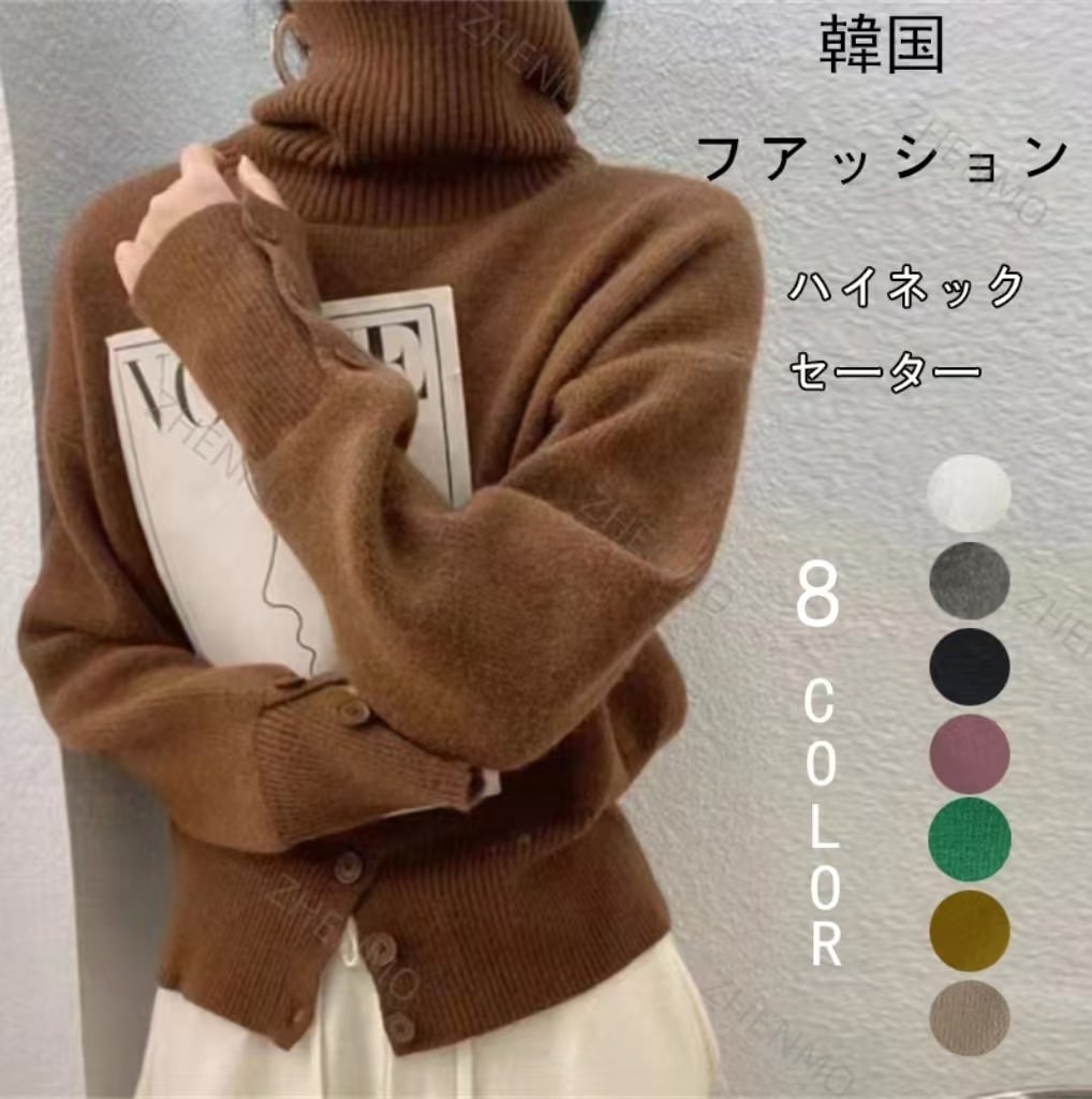 期间限定秋冬韓国ファッション カシミヤタッチニットカーディガンハイネックセーター レディーストップスリブインナー長袖 百掛け快適 柔らかい お肌に優しい 大きいサイズ