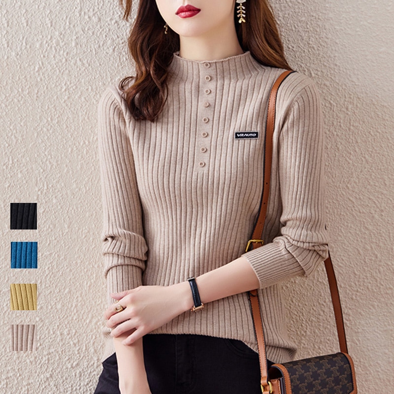 韓国ファッション秋冬 高品質 ニットハイネックセーターハーフハイカラーのプルオーバーソリッドカラー ニット