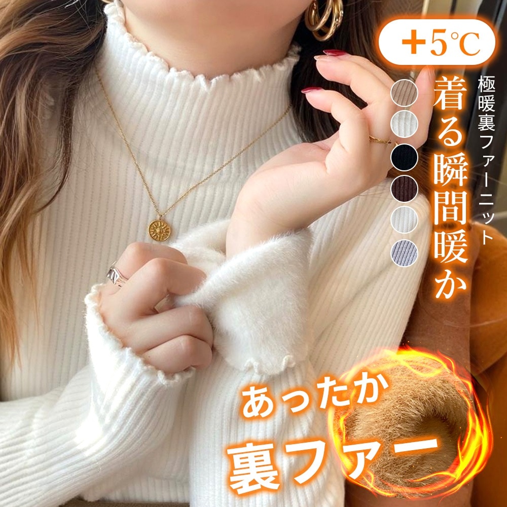 2タイプ裏起毛カットソーニットセーターリブニット裏ボアレディース秋冬メロウプチハイネック裏ボアニットセーターニットソーリブ編みフリルネック