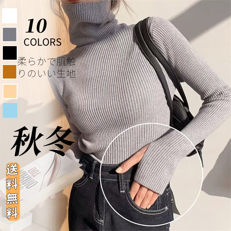 早秋新作 ニットトップス ニットハイネック ストライプセーター ハイネック上着 ゆったりフ レディース純色 長袖 無地 ニット