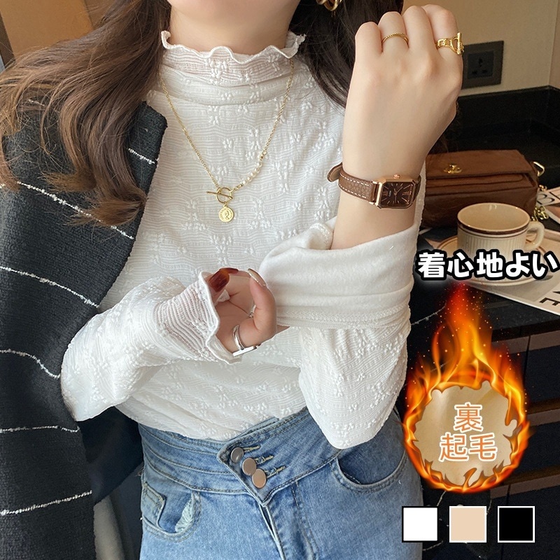 人気なリプニット レースアンダーウェア 秋冬 裹起毛 長袖トップス ハイネックセーター レディース ニット