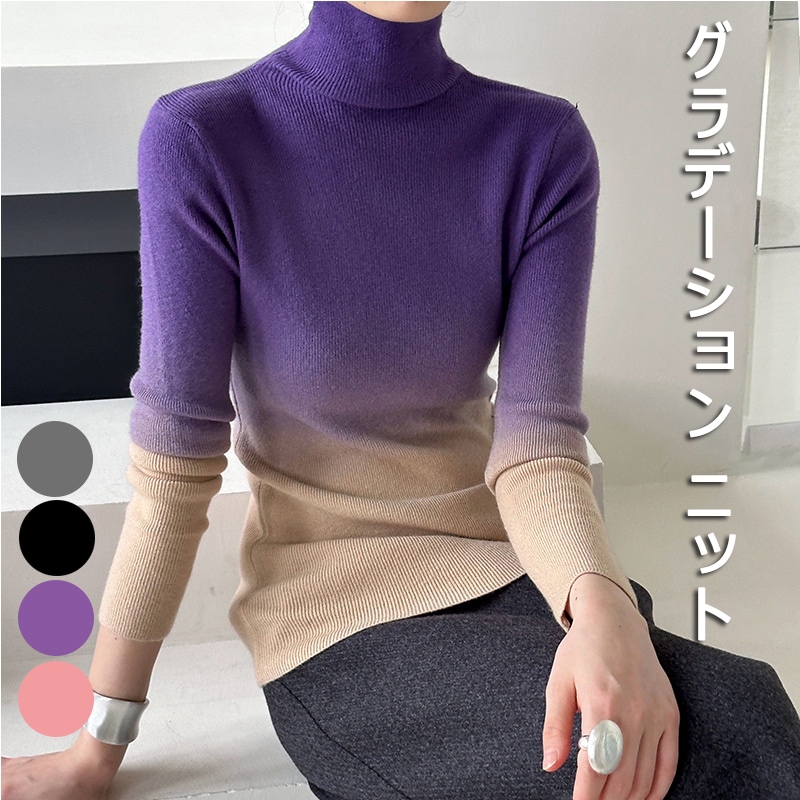 グラデーションニット タートルネック レディース トップス リブインナー ニット