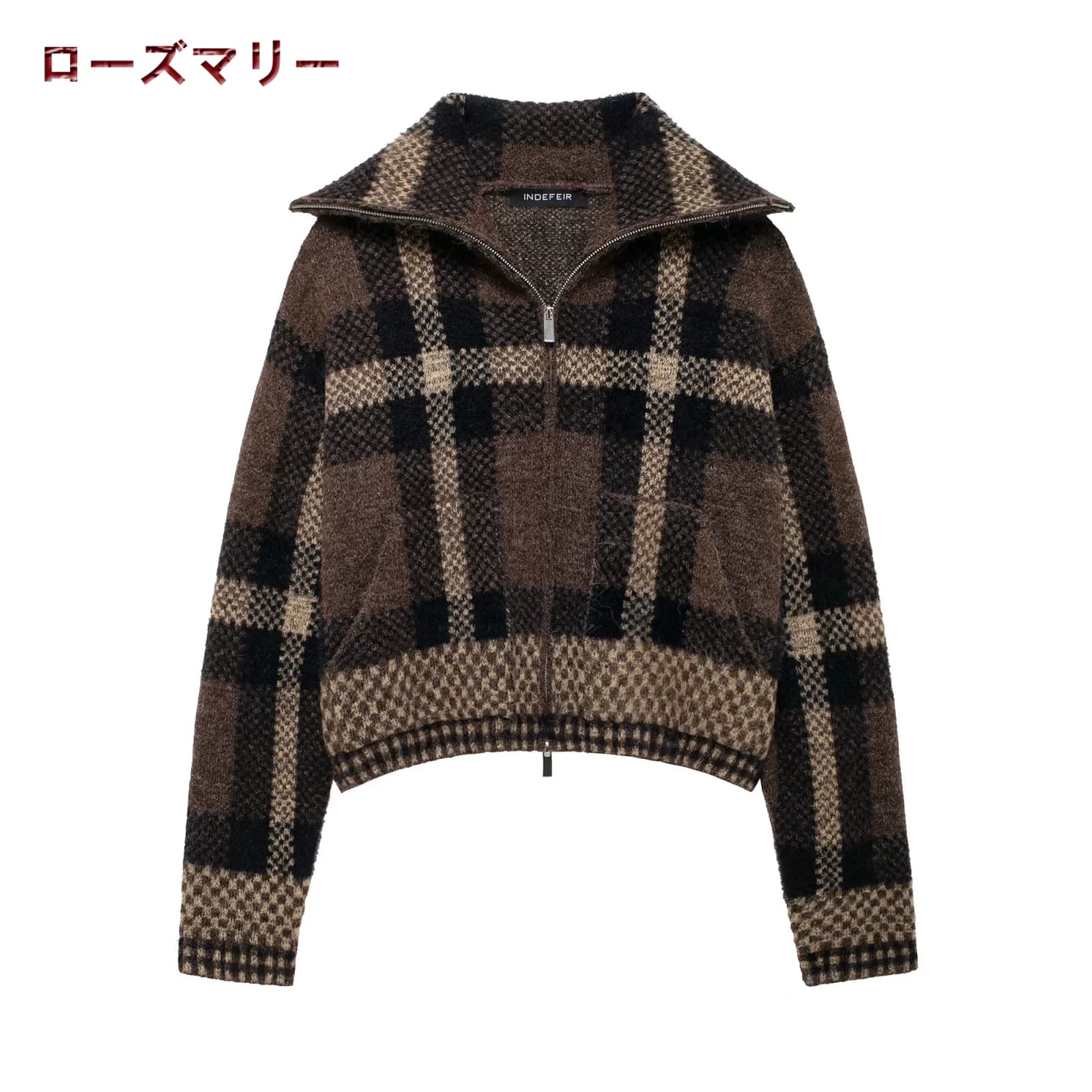 ローズマリーソワール 欧米風2024.10.09 秋冬 新作 ゆったりカジュアルチェックのニットセーター ニットトップス ルーズトップス 2409442