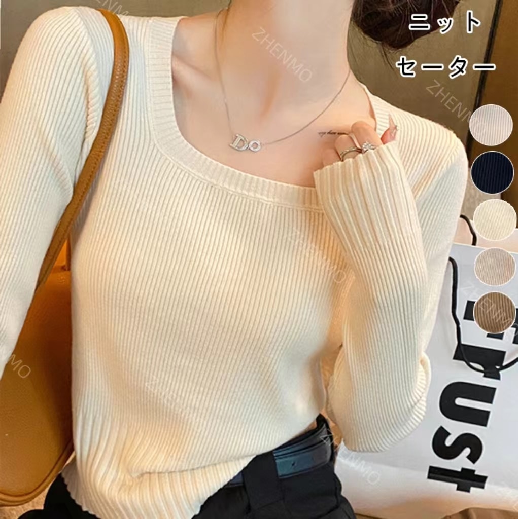 2024新作高品質 韓国ファッション秋冬ニットTシャツ 8カラー秋ニット レディース 無地 ニット プルオーバー リブニット トップス 長袖 無地 可愛い