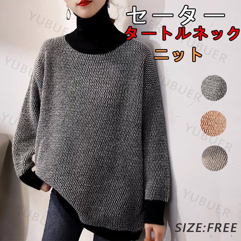 スウェット カシミヤタッチベーシックニット 冬でもブラウス パーカー ラウンドネックニット タートルネックニット長袖2022ハイネックスウェットニットワンピースゆったりセーターレディース