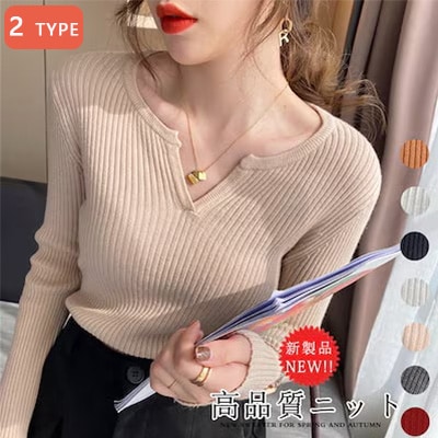 2024新作韓国ファッション秋冬ニットTシャツ 8カラー秋ニット レディース 無地 ニット プルオーバー リブニット トップス ニット