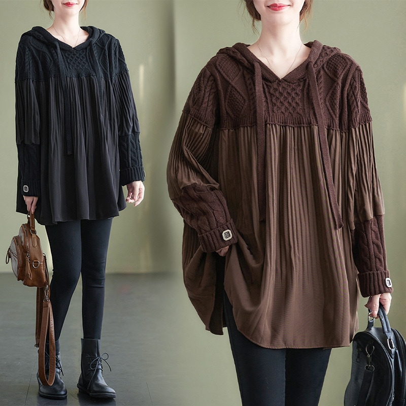 初秋ベーシックニット カシミヤタッチフード付きニット トップス 無地百掛けセーター レディース 怠惰な風カジュアルスウェットニット 20代30代40代 長袖トップス ニットセーター