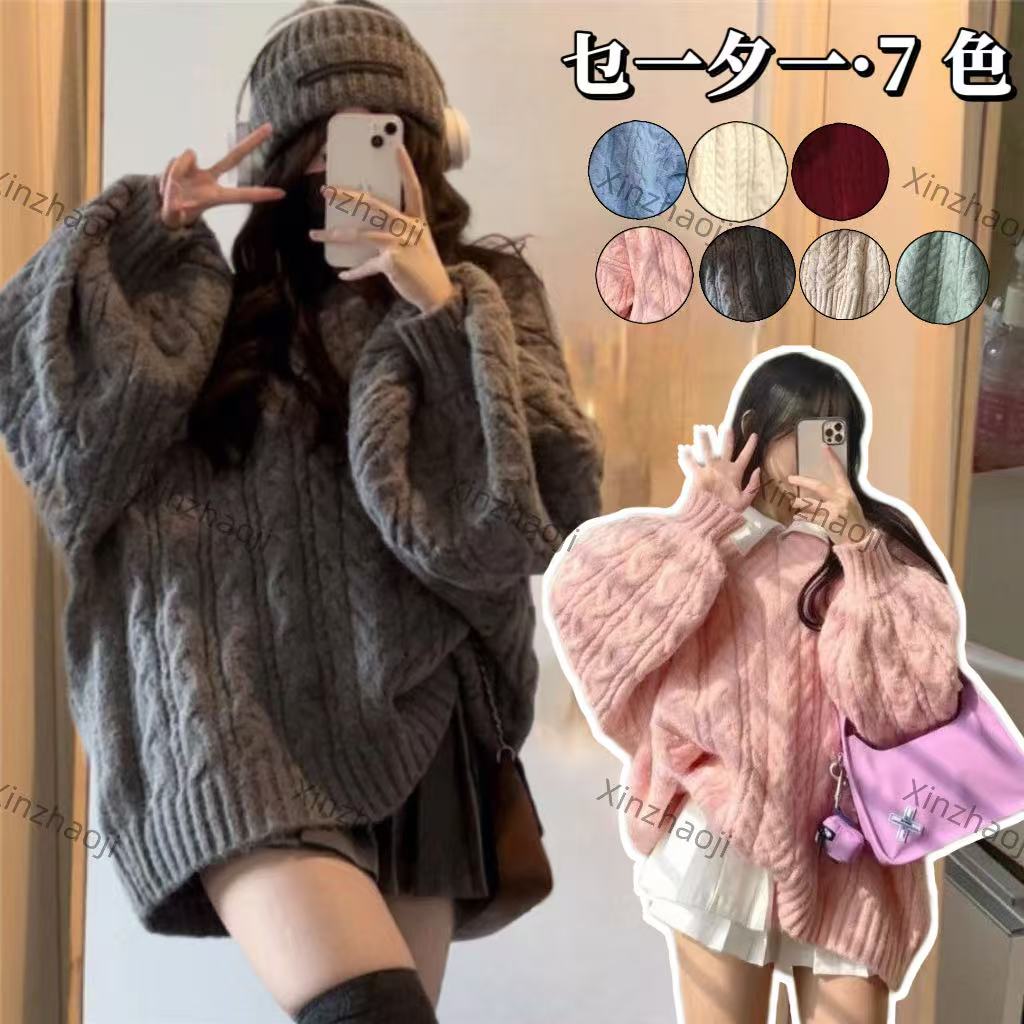 Vネック無地 長袖 ドニットクルーネック Vネック ニット トップス 長袖 韓国ファッション 秋 冬 ゆるニット 肌触しっとり きれいめ セーター ド