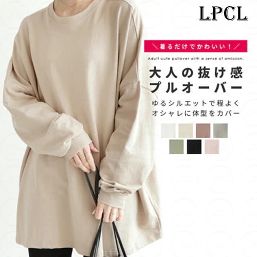 春と秋の新作レディースゆったりミドル丈スウェットシャツレディースカジュアル ニット