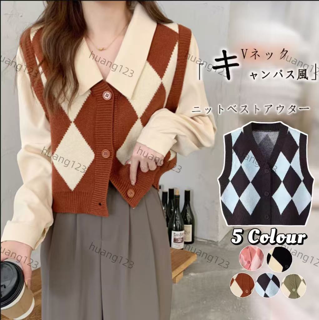 ベーシックニット 韓国ファッション 無地 秋冬 レディースベスト レディーストップス レディースセーター