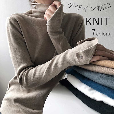 ニットセーター レディース トップス 長袖 秋冬 秋 春 タートルネック バルーンスリーブ バルーン袖 綿 キャメル 無地 シンプル 韓国ファッション 通勤 OL 通学 20代 30代 40代 50代