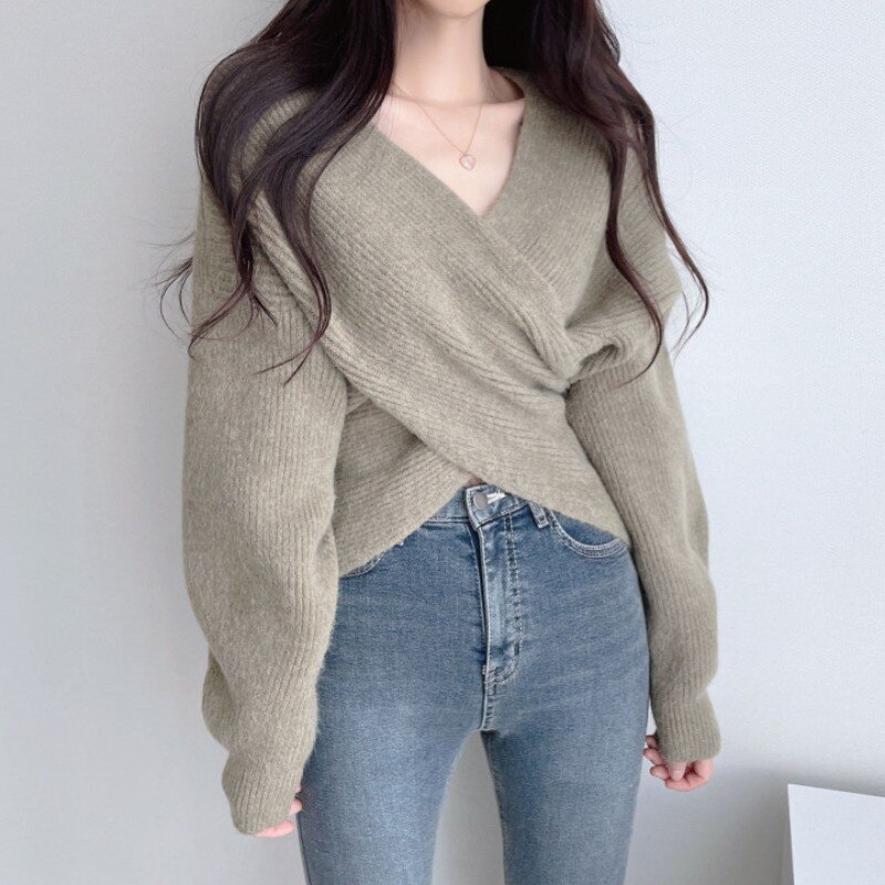 ゆったり エレガント クロス プルオーバーデザイン 柔らかい 長袖 セーター ニットカーディガンラウンドネックニット ベーシックニット ニット