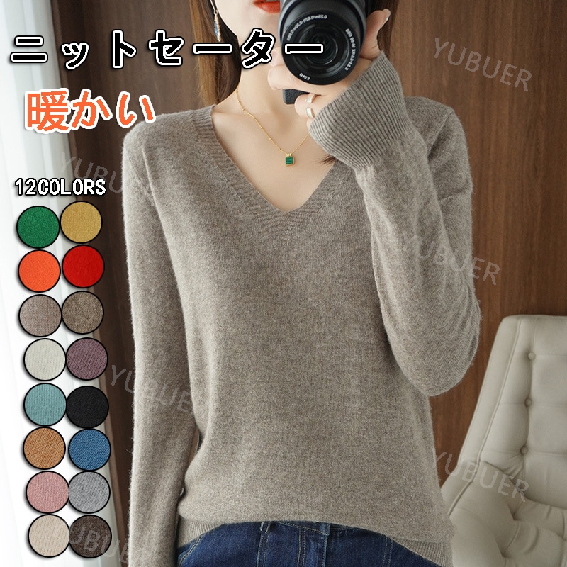 着心地良い ニットセーター レディース 長袖 秋冬 柔らかい Vネック インナー セーター トップス 重ね着 可愛い 通勤 OL 体型カバー きれいめ