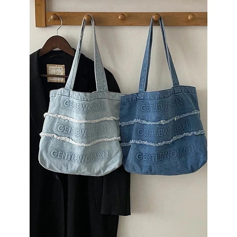 バック韓国 ハンドバッグ 便利 トートバッグ ファッション レトロなデニムのワンショルダーバッグがたっぷり大容量トートバッグ学院風カジュアルランドセル
