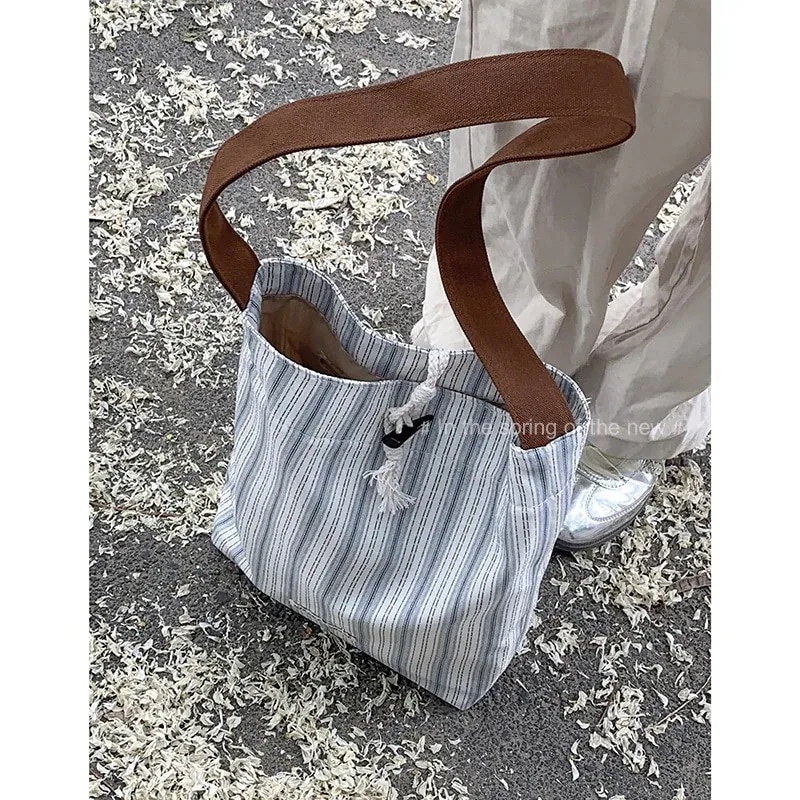 バック韓国 ハンドバッグ 便利 トートバッグ ファッション カジュアルバッグキャンバス大容量女性脇の下バッグ24ファッションストライプショルダーバッグシンプルバケツバッグ