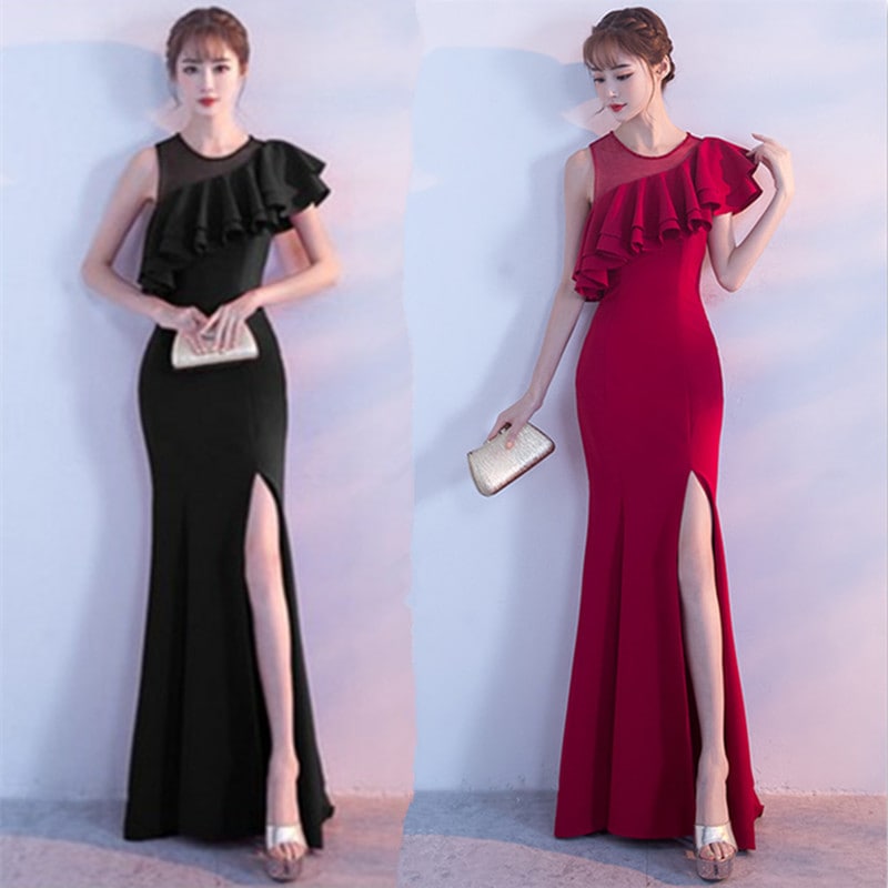 宴会 イブニングドレス 新作 気質 女王 気質 フィッシュテール ロングセクション スリム ハイエンド 雰囲気 イブニングドレス ドレス