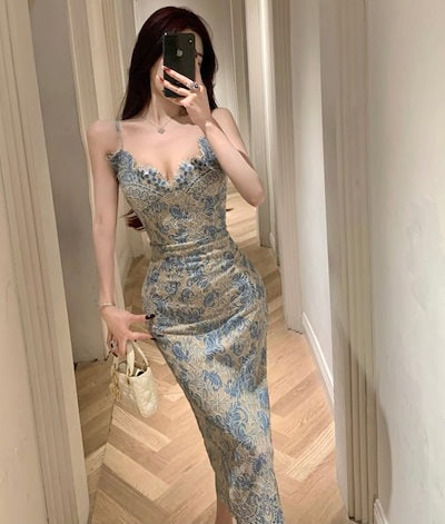 [4カラー] 2025春夏新品 韓国ファッションタイトワンピース袖なしレースセクシーなドレス ロングワンピースレディース気質で痩せ見えパーティードレス