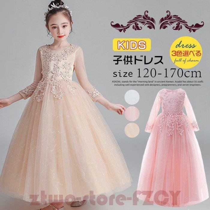 子供ドレス ロングドレス ピアノ 女の子 パーティー 刺繍 発表会 結婚式 フォーマル ジュニア フ ドレス