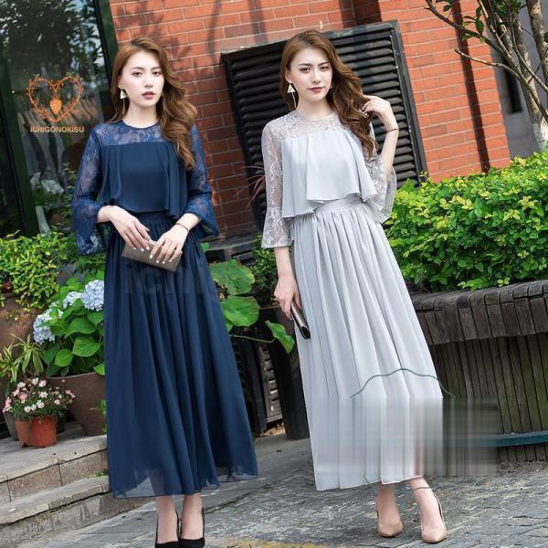 パーティードレス 結婚式 ワンピース ドレス 親族 袖あり ロング丈 ロング フォーマルドレス 大きいサイズ 春 夏 秋 冬 20代 30代 40代 50代 60代