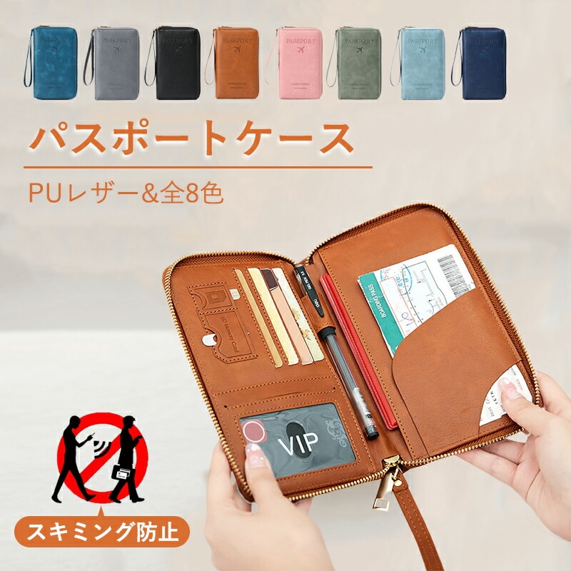 パスポートケース スキミング防止 安全 海外旅行 パスポートカバー RFID ファスナー式 多機能収納ポケット 軽量 おしゃれ ミニ財布 コンパクト PUカード入れ カードケース トラベルケース 通帳