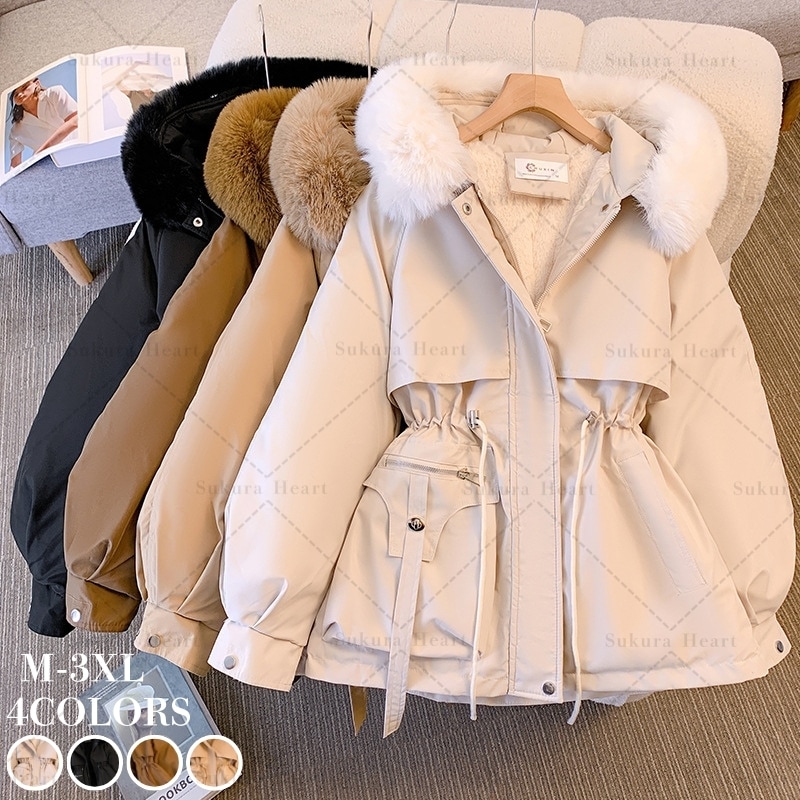 秋冬人気新作 ドローストリング ウエスト引き締めダ レディース ダウンジャケット 大きいサイズ ダウン アウター モコモコ ファーカラー 防寒暖かい おしゃれ 着痩せ 韓国ファッション