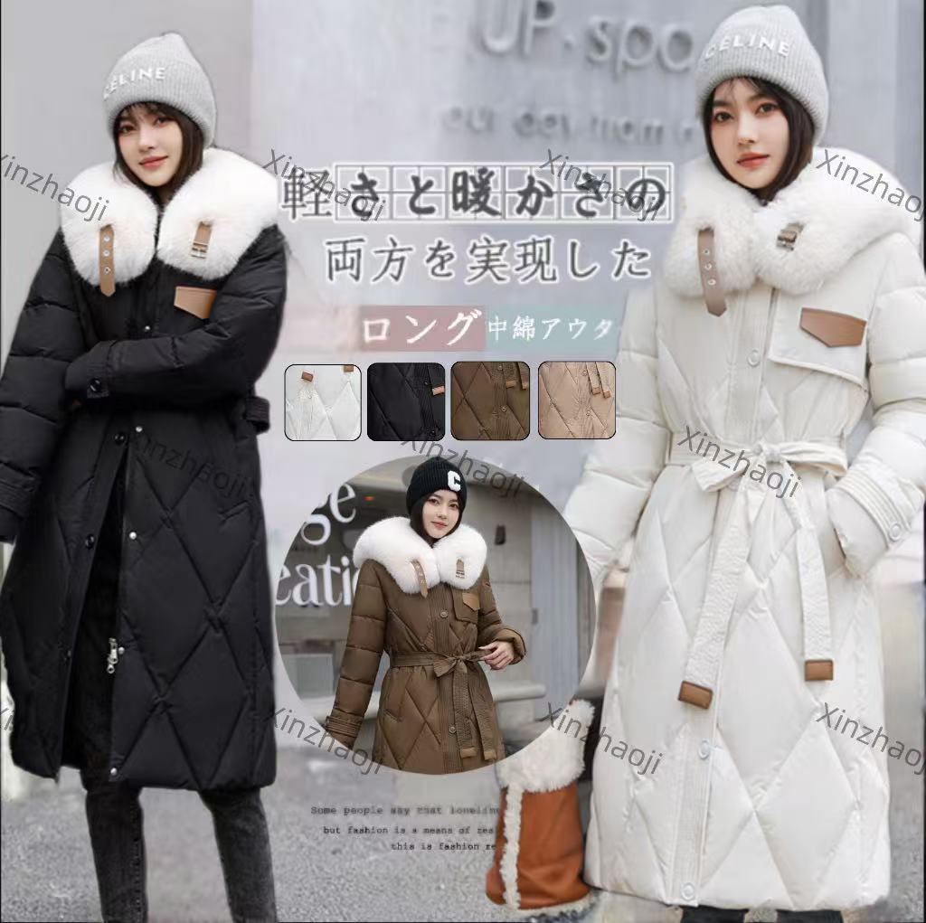 秋冬 ダウンコート レディース ロング ダウンジャケット 韓版 厚手 中綿コート ゆったり 着痩せ ダウンジャケット - 軽量 暖かいジャケット 防寒 アウトドアに なダウンジャケット