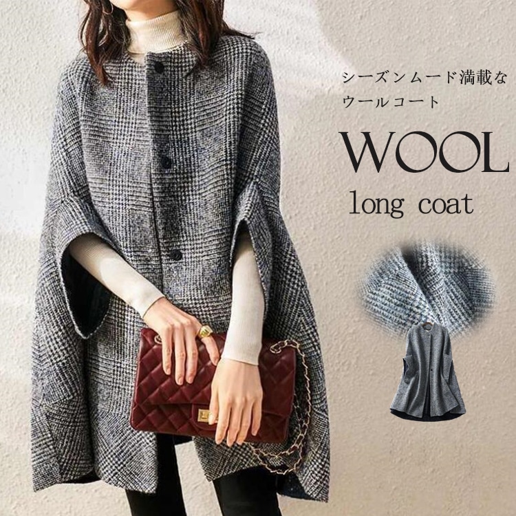 ウール コート レディース 冬 きれいめ ポンチョコート マント ケープ ポンチョ ケープコート チュニック 防寒 体型カバー 暖かい ウールコート ボリューム ノーカラーコート