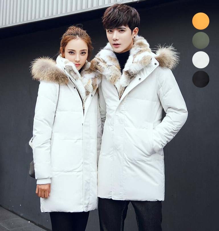 男女兼用 ダウンジャケット ダックダウン 裏起毛 ダウンコート メンズ ロングコート レディース フード付き ファー付き 取り出し可能 リアルファー お揃い ペアルック 大きいサイズ 韓国