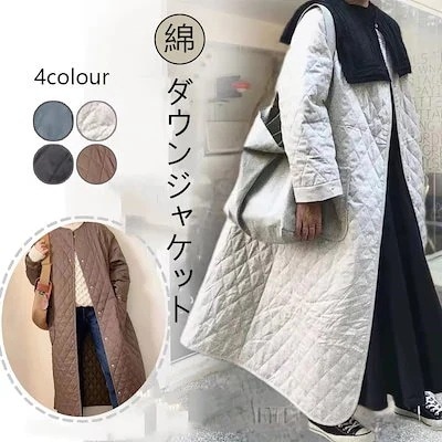 ダウンジャケット ロングコート ジャケット キルティング ノー カラー キルト 秋冬 軽め 中綿 黒 春 秋 冬 機能 レディース ダウンジャケット コート