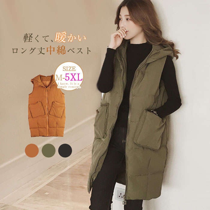 40代 体型カバー 30代 ゆったり おしゃれ 50代 黒 大きいサイズ パーカー 大きいサイズ 軽量 レディース フード付き ダウンベスト アウター ノースリブ ロングダウンベスト レディース