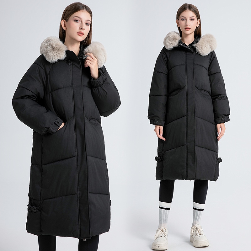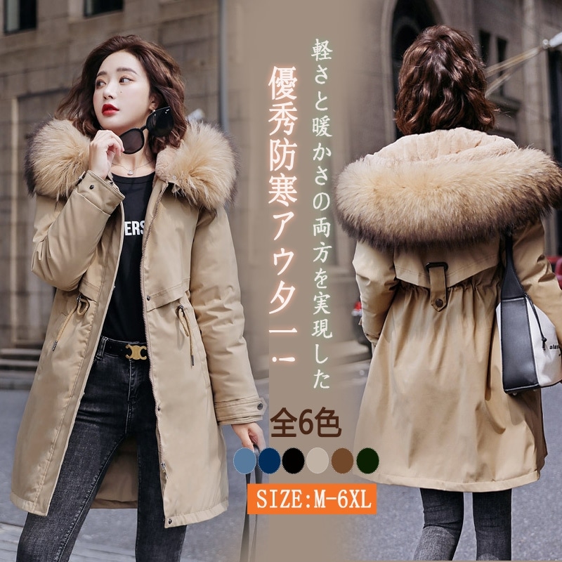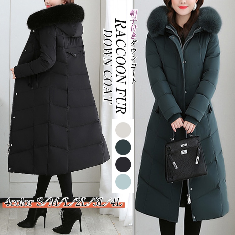 フォックスファー付取り外し可能ダウンコートレディースコートロングロングダウンコート冬きれいめダウン大きいサイズファーアウターダウンジャケットフード防寒対策暖かい