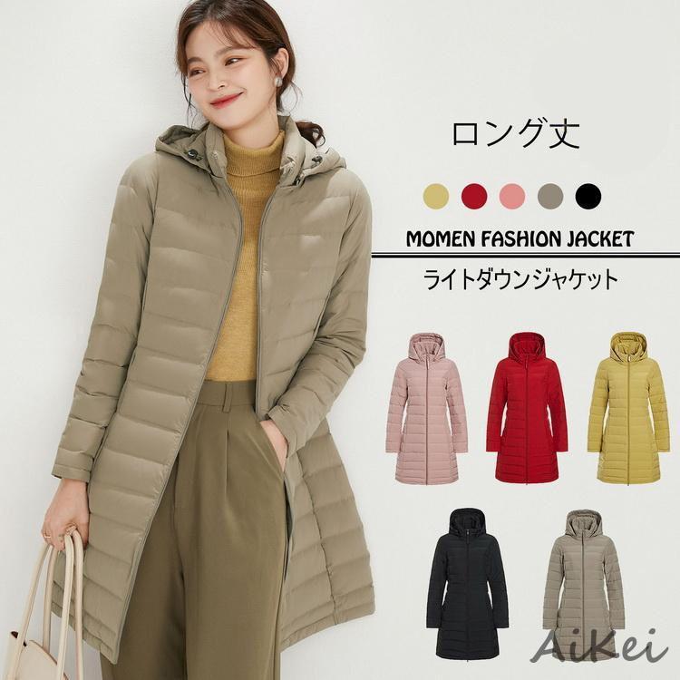 ロング丈フード付きライトダウンジャケット レディース ロング丈 ダウンジャケット 軽量 90%ダウン ライトアウター 防寒 ダウンジャケット コート