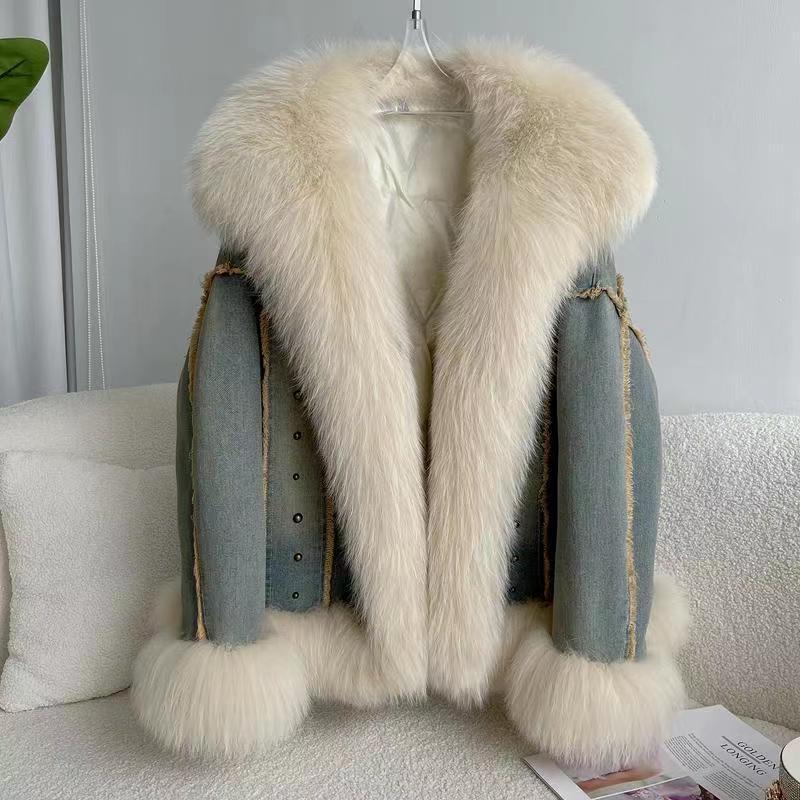 はキツネの毛皮をまねてダウンジャケットをつなぎ合わせた女性は冬に保温防寒パーカーを厚くする ダウンジャケット コート
