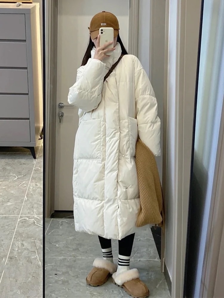 90%ダウン カップルロングダウンジャケット 男女兼用 メンズダウンジャケット レディース服 アウター レディースファッション 韓国ファッション 中綿ジャケット ロングコート 厚手 暖かい 防風