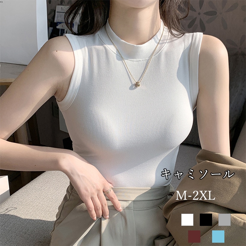 タンクトップ レディース 春 白 黒 クロップド トップス ショート丈 ノースリーブ タンク インナー 無地 ホワイト ブラック 20代 30代
