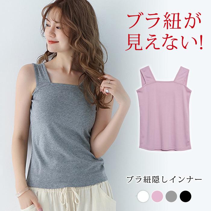 ブラ紐隠しインナー レディース 春 黒 白 無地 ブラ紐を隠せる タンクトップ インナー ブラック ホワイト グレー ピンク 20代 30代 40代