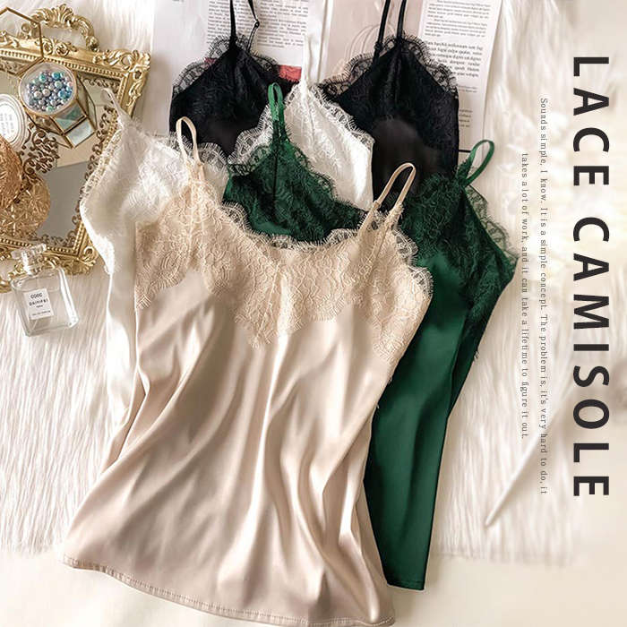 レースキャミソール レディース インナー キャミソール トップス レース タンクトップ 冷感インナー 接触冷感 切り替え サテン 花柄レース フラワーレース Vネック 透け感 肌着 耐久性 洗える 人