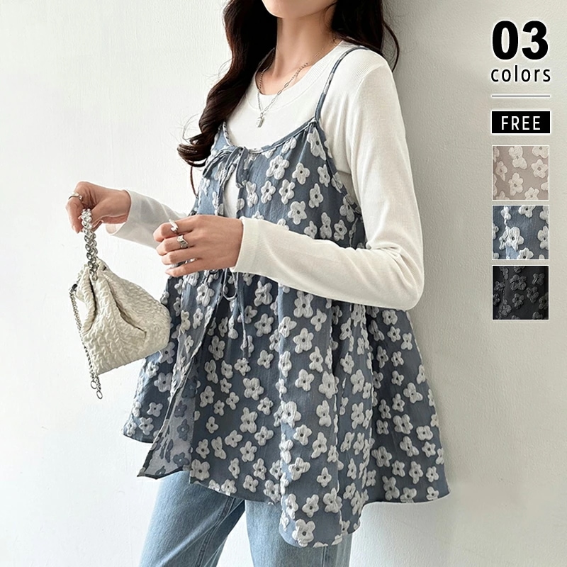 ペプラムキャミソール フロントリボン ペプラムビスチェ ペプラム キャミソール フロントリボン 重ね着 ビスチェ デイジー柄 花柄 キャミ トップス レディース リボン チュニック
