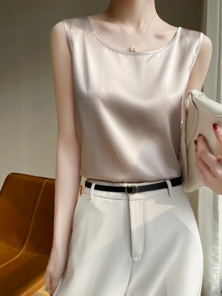キャミソール 2024春夏 新作 百掛け ゆるい 大きい タンクトップ シルク トップス キャミソール