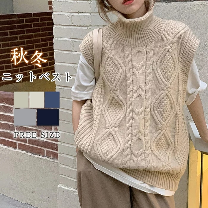 ベストセーターレディーストップスベストハイネックニットケーブル編みシンプルショート丈リブ編みセーター着心地重ね着コーディゆったりカジュアルお出かけお呼ばれ柔らかい203040
