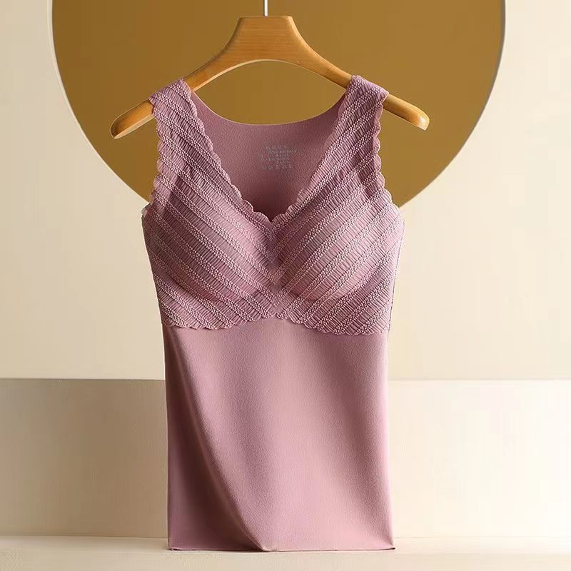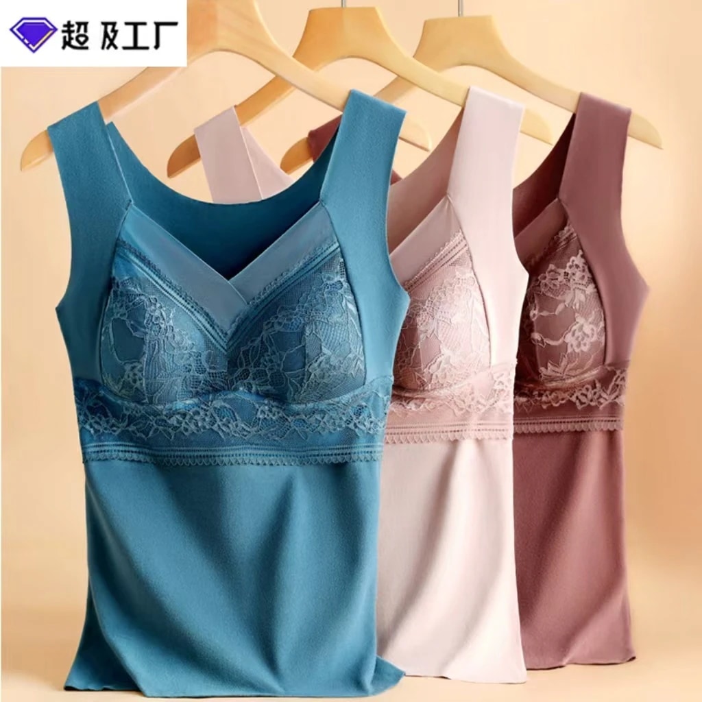 2024 人気 カップ付きインナー レースの保温ベストにスエードの厚手の秋冬保温トップス キャミソール タンクトップ ヨガ 美背 レディース