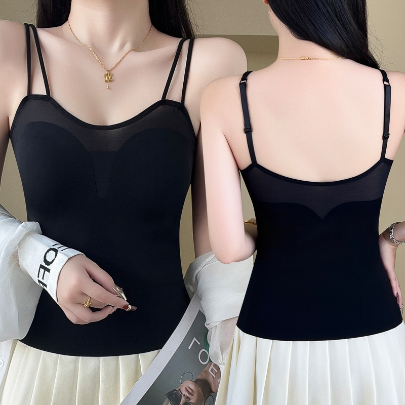 2024 人気 カップ付きインナー ダウンに厚手の保温ベスト秋冬ボトムシャツトップス キャミソール タンクトップ ヨガ 美背 レディース キャミソール