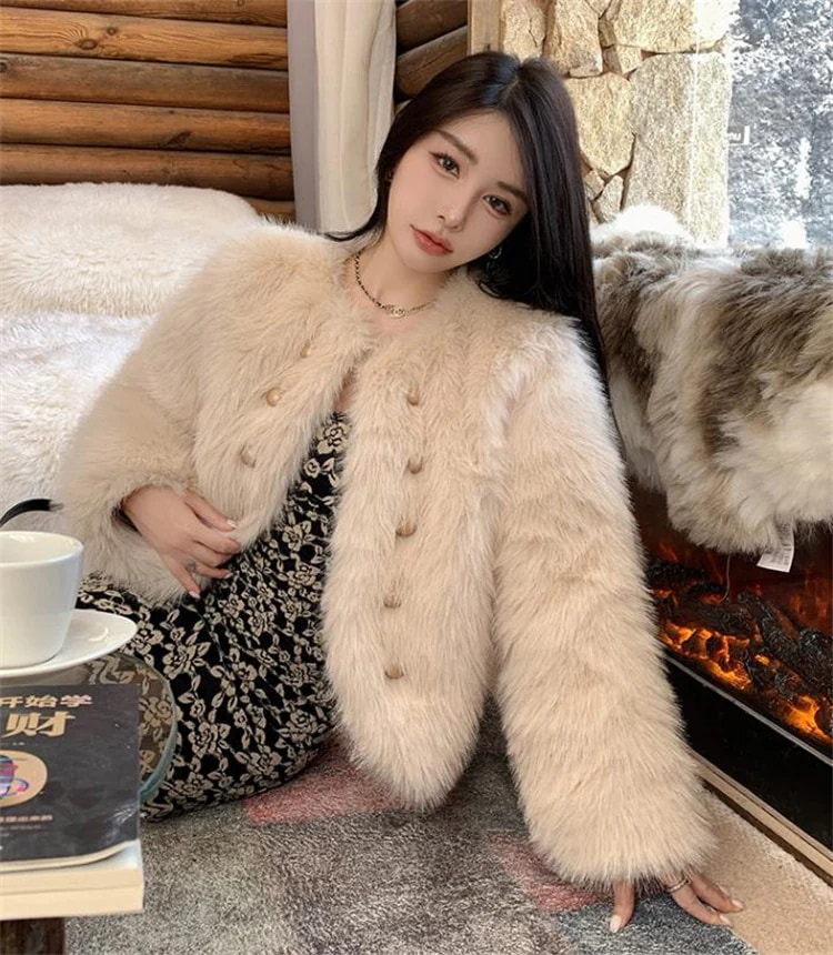 韓国ファッションファーコートアウター レディース 秋冬ゆったりニットボタンシングルブレスト ファー 毛皮アウター
