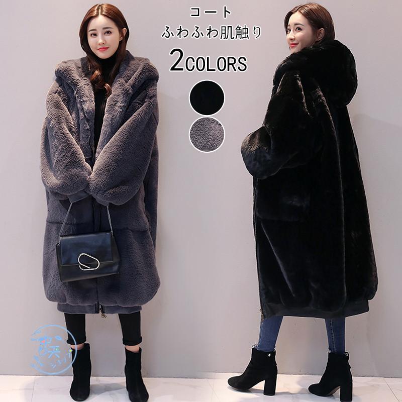 2024新色追加 北海道もフリースで保温 ふわふわ フェイクウサギファー コート ボア パーカ ファー 毛皮アウター