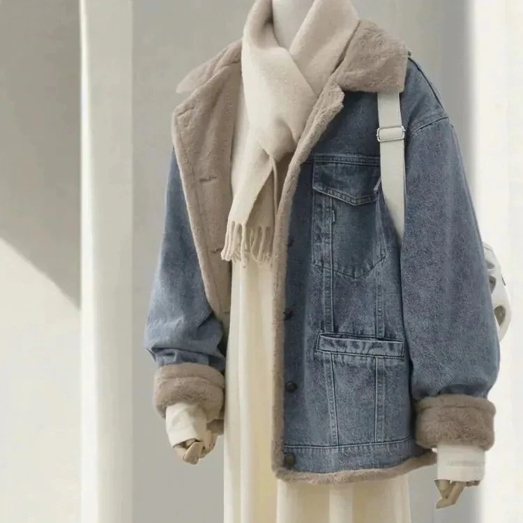 韓国ファッション デニム 毛皮 裏起毛 ダウンジャケット スウェット パーカー 厚手 中綿ジャケット マウンテンパーカー フード付き イーザッカマニアストアーズ over size 防風 ダウンコート