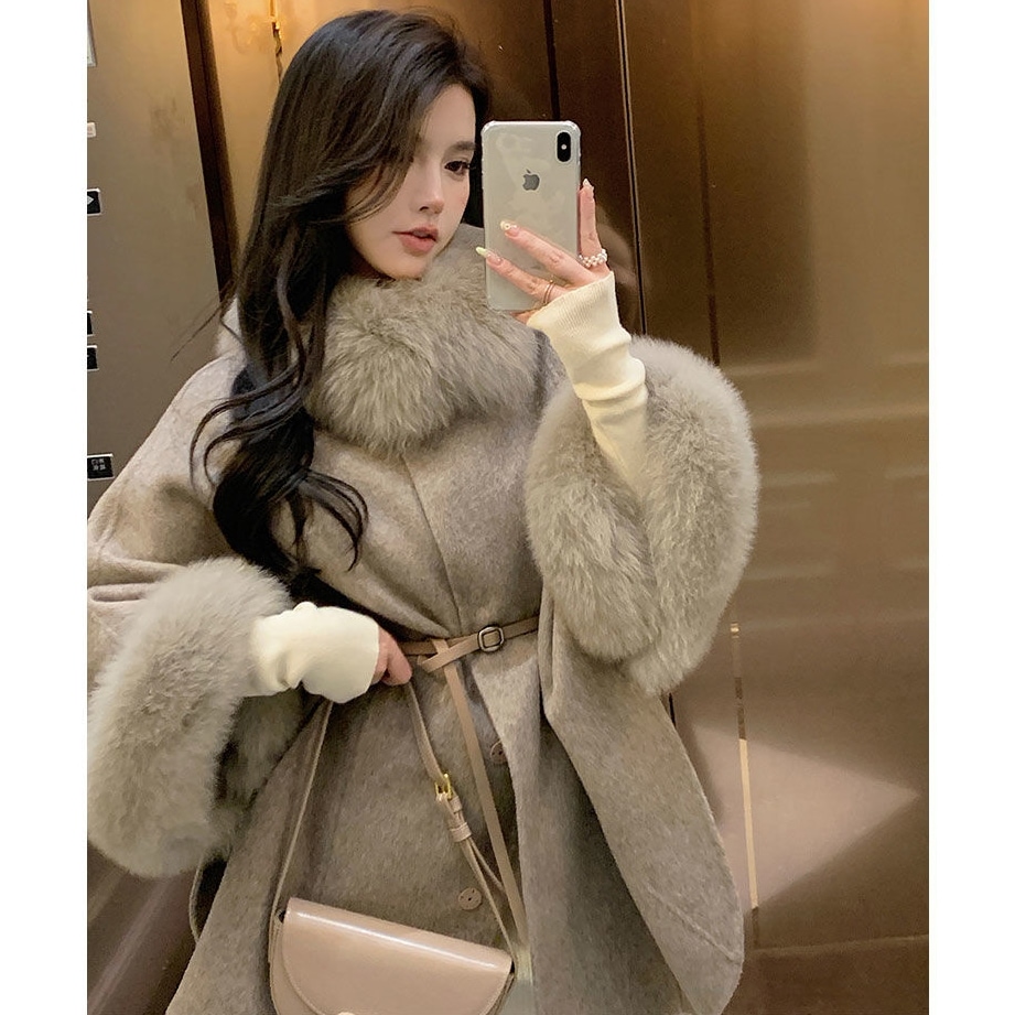 ラシャコート女2024秋冬新作名媛中長タイプ高級感マント大毛襟毛コート ファー 毛皮アウター